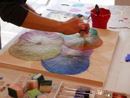 植物彩繪(Botany Painting)是一種運用天然蓮葉或菩提葉,親手排列、黏貼,並對葉片上色的藝術創作。即使沒有繪畫經驗,也能輕鬆完成專屬於自己的獨特作品。這些結合自然與創意的畫作,不僅是獨一無二的藝術品,也能作為優雅的空間裝飾,為日常生活增添自然氣息與色彩。