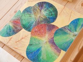 菩提樹葉8片、蓮花葉5片、黏膠、木製畫板(30cm×60cm)1個